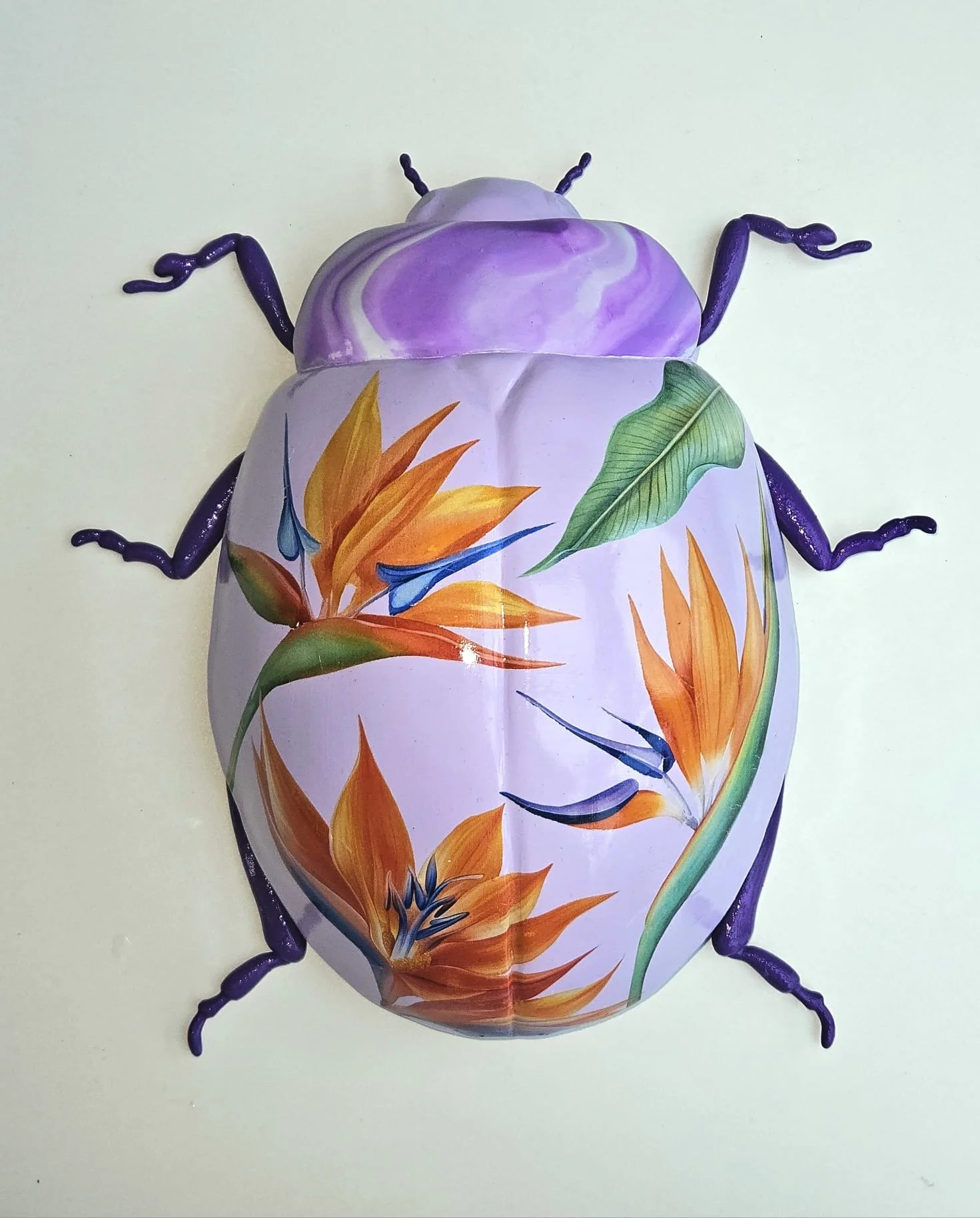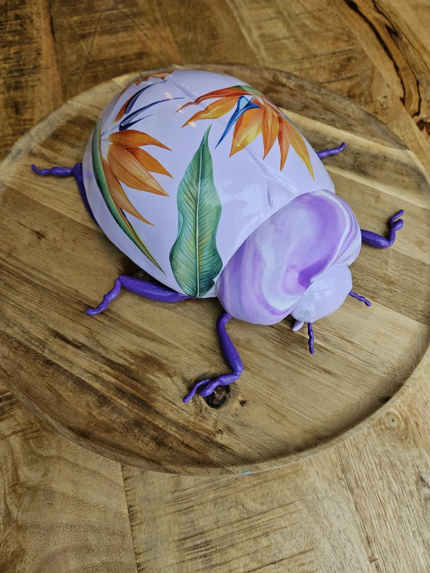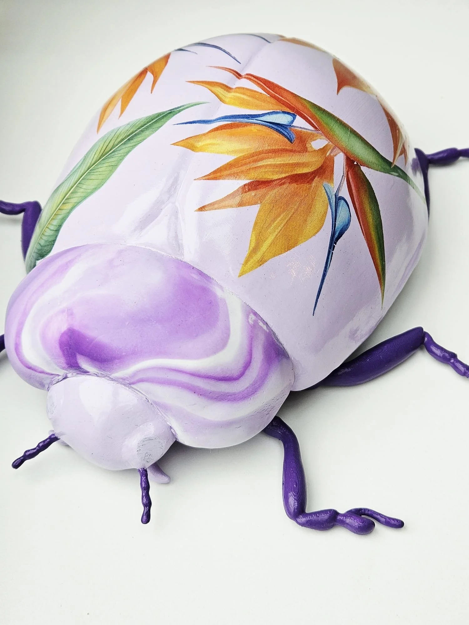 A celebration of resilience in miniature form, Bird of Paradise Ladybug fuses natural wonder with whimsical elegance. The classic ladybug silhouette is reimagined in soft lilac, its shell blooming with hand-painted Strelitzia flowers—symbols of freedom, joy, and strength.